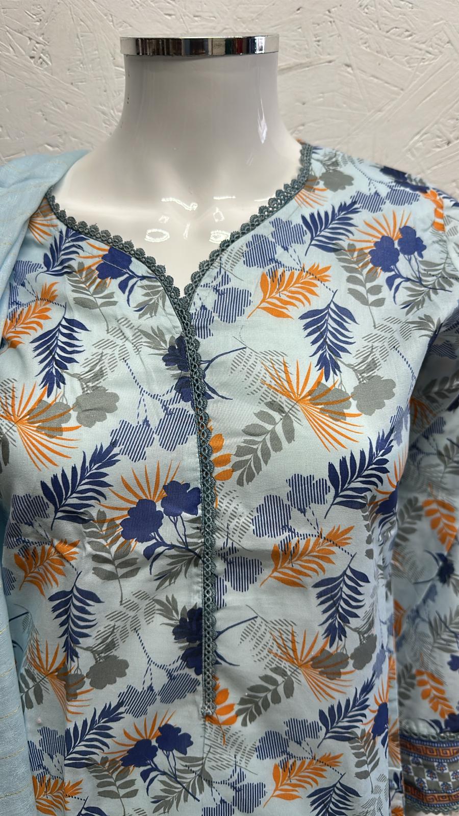 Luxury Lawn 3 Piece with Matching Trouser and Banarsi Dupatta