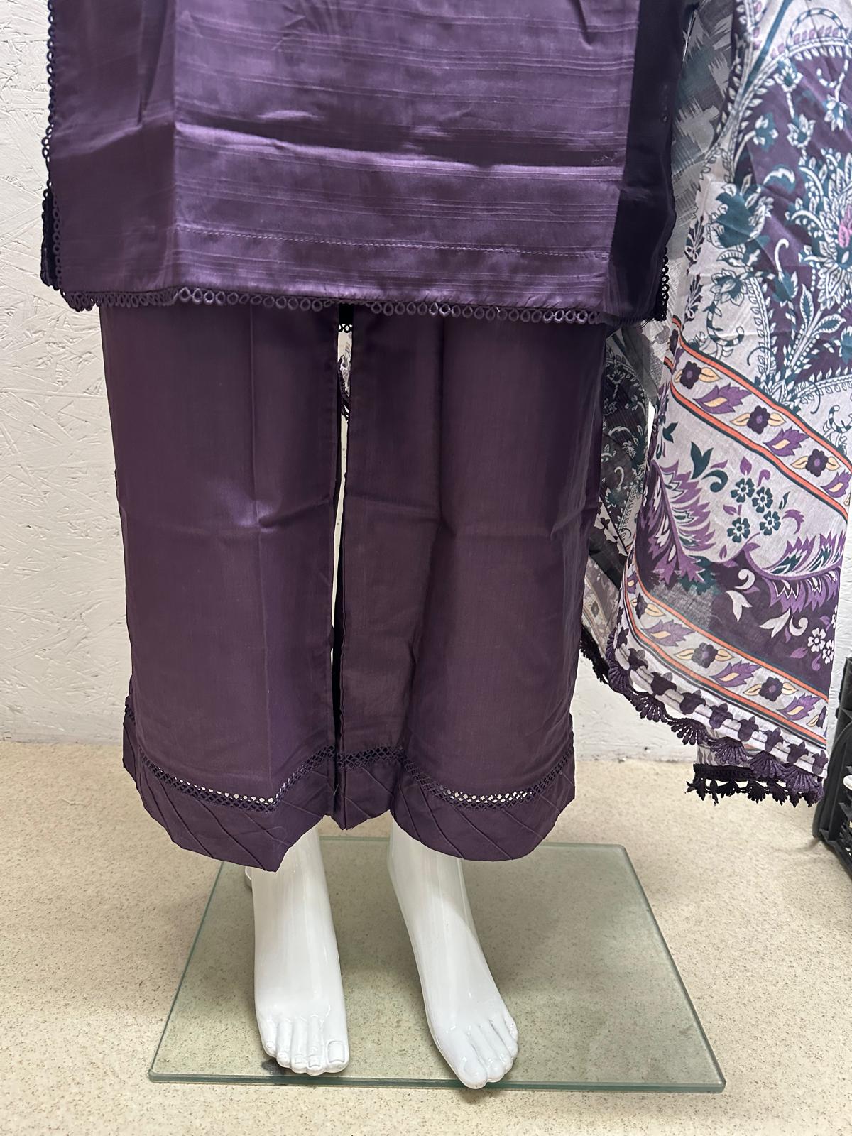 Elevate your style with our three-piece slub lawn, featuring solid matching separate with printed dupatta.